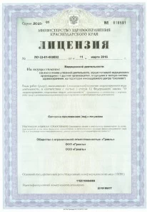Вся документация и оснащение согласно приказу министерства здравоохранения РФ *№ 835. Все специалисты сертифицированы.